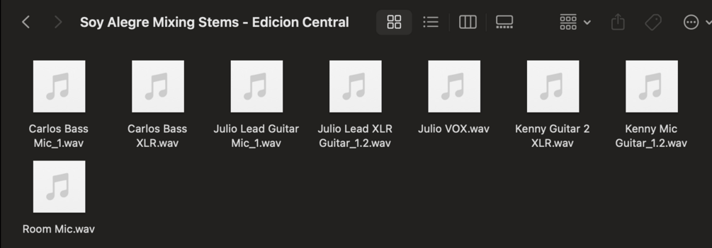 The Soy Alegre Practice Session is designed for audio engineers, producers, and musicians looking to master the art of mixing and mastering Regional Mexican music. This all-in-one package provides everything you need to practice mixing and mastering Soy Alegre by Edición Central from start to finish. Whether you use Logic Pro X or another DAW, this session will give you hands-on experience with professional live-recorded audio files.